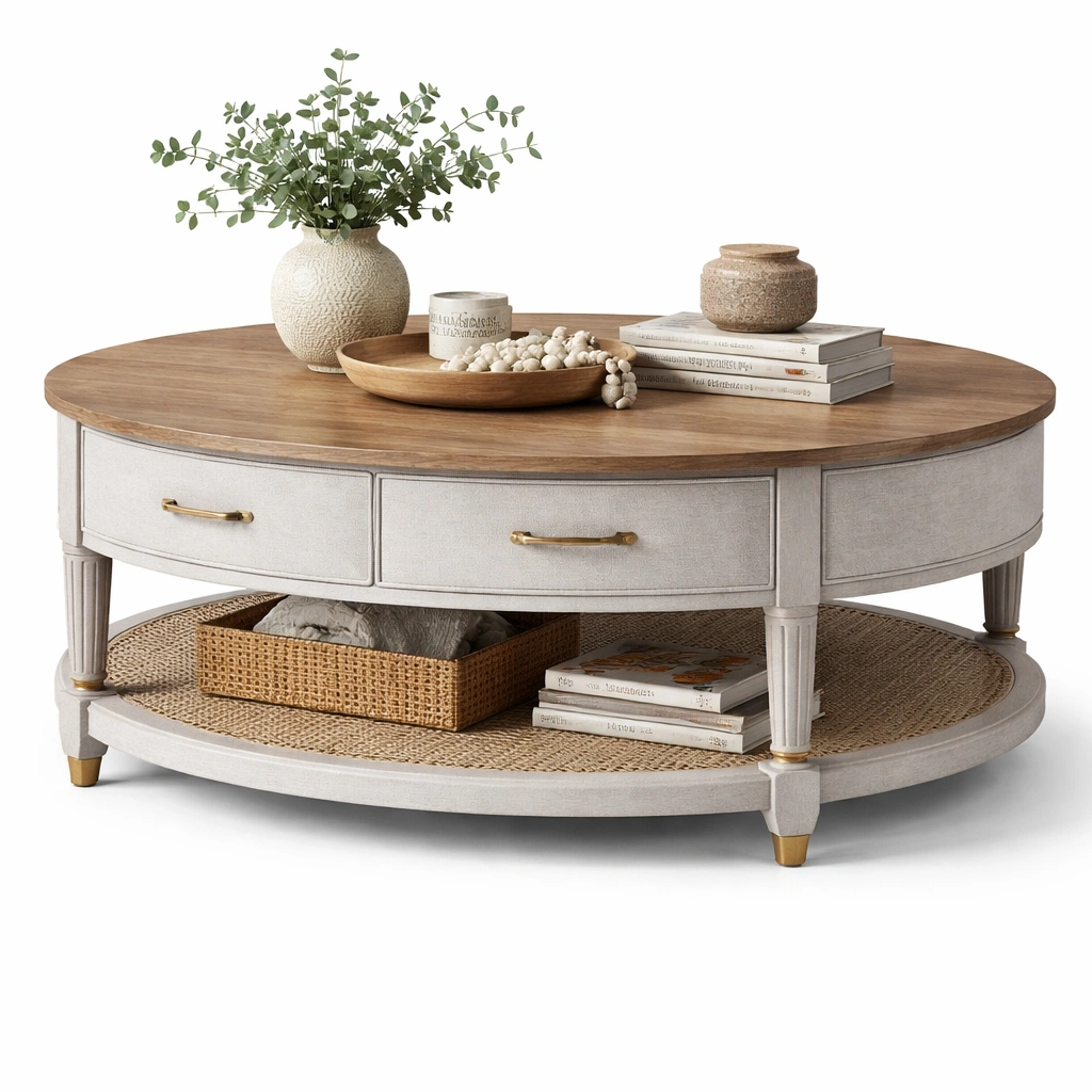 Beschreibung: Dieser Couchtisch kombiniert eine stabile Bauweise mit praktischen Schubladen. Die grosszuegige Oberflaeche bietet ausreichend Platz fuer Dekoration und die alltaegliche Nutzung.